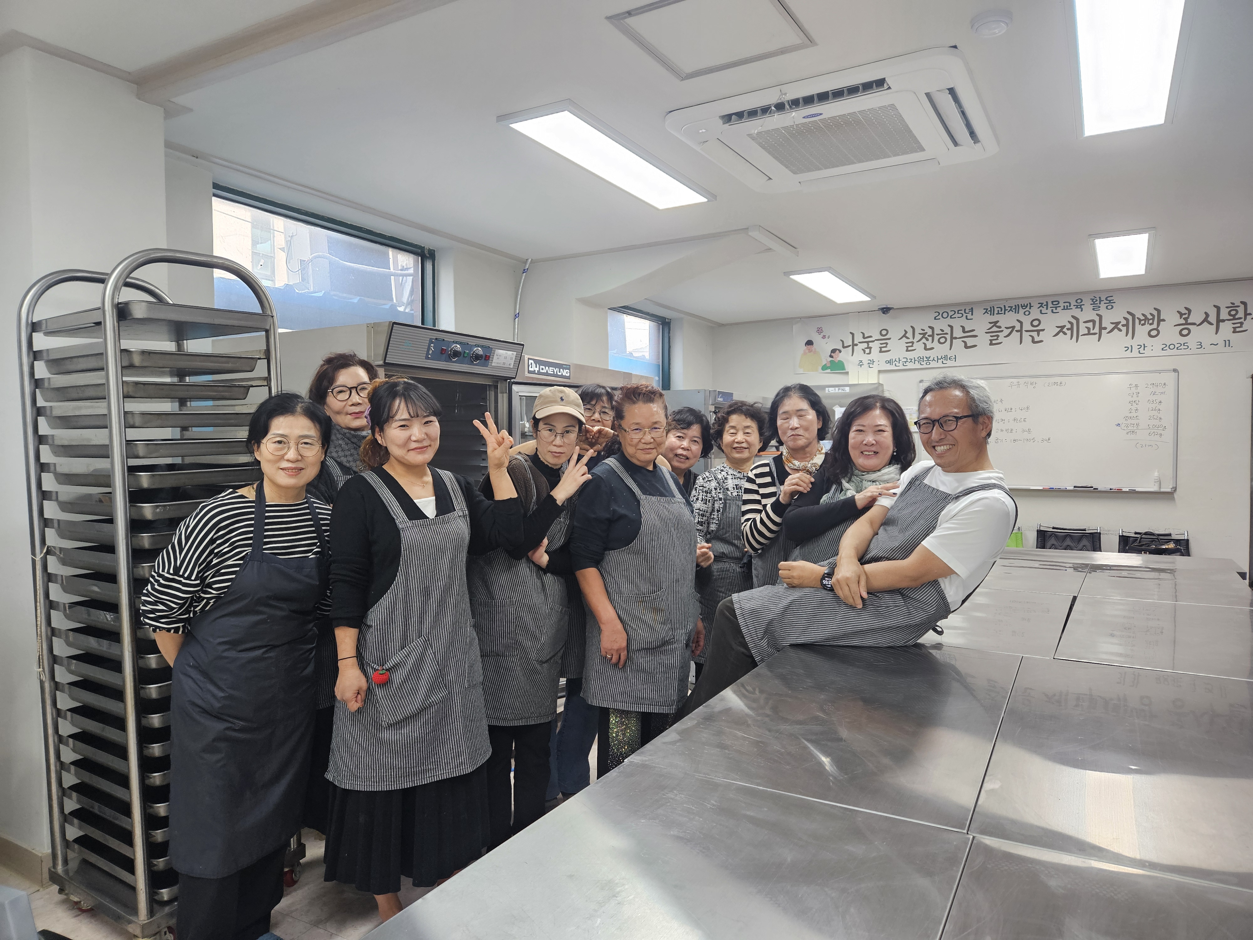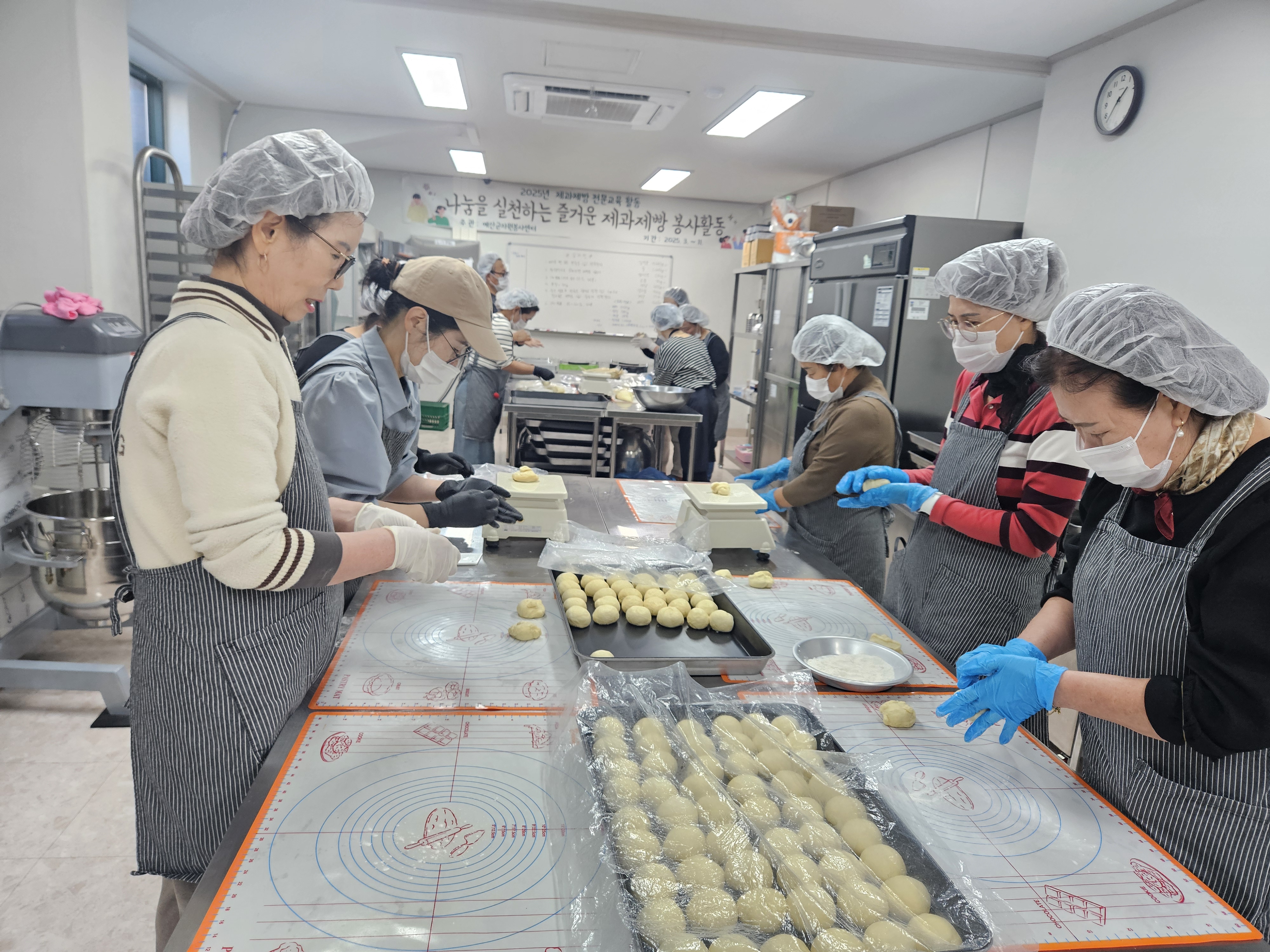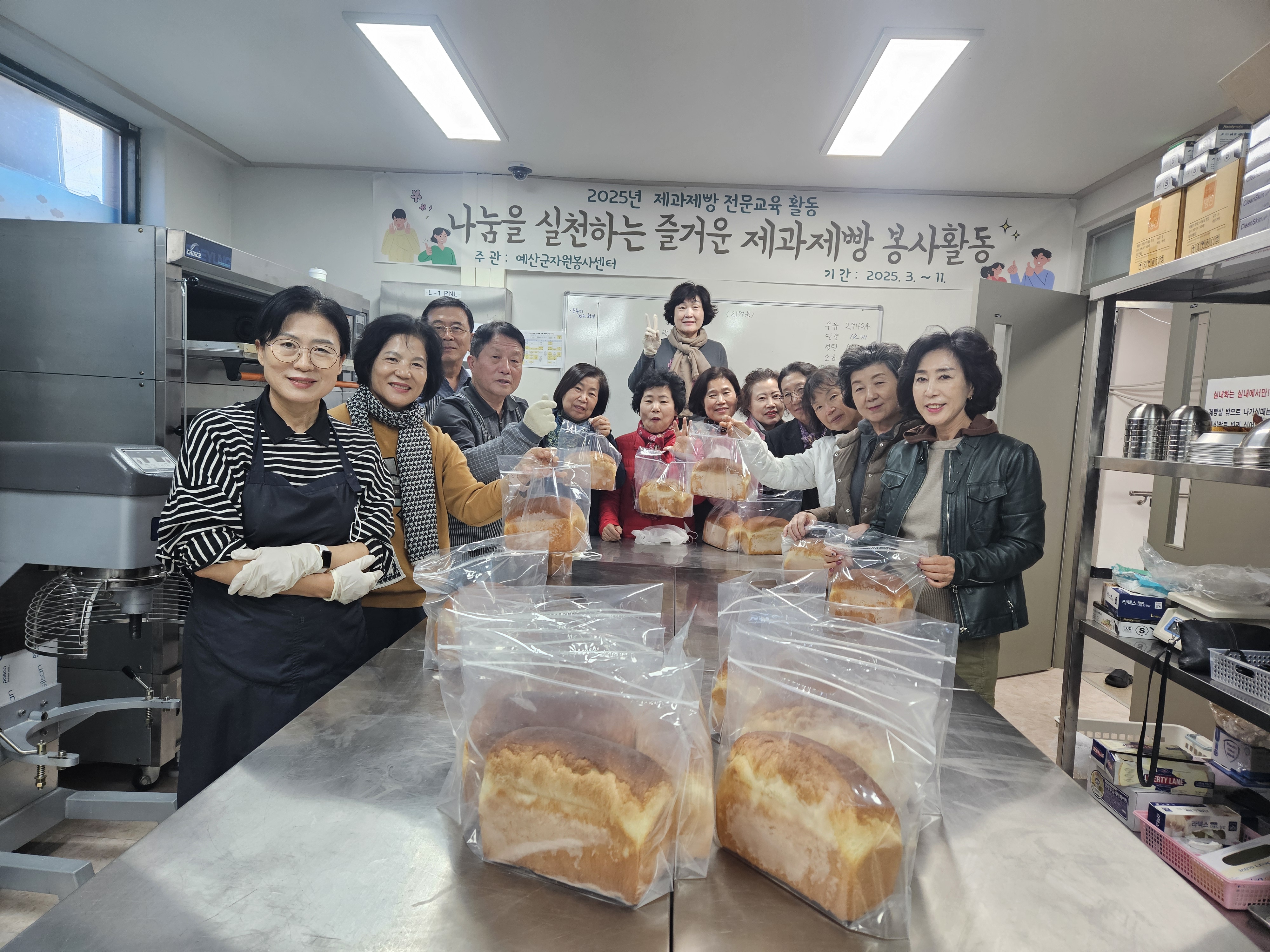 11월 제과제빵 전문교육활동이 마무리가 되었는데요. 이달에는 3월부터 참여해주신 성인제과제빵봉사자분들께 인정보상 프로그램으로 우유식빵을 만들어 직접 가져가는 프로그램도 진행하였습니다.  또, 맛있는 모카번과 크림치즈초코머핀을 만들어 예산읍 마을회관 어르신들께 따뜻하게 전달이 되었습니다.