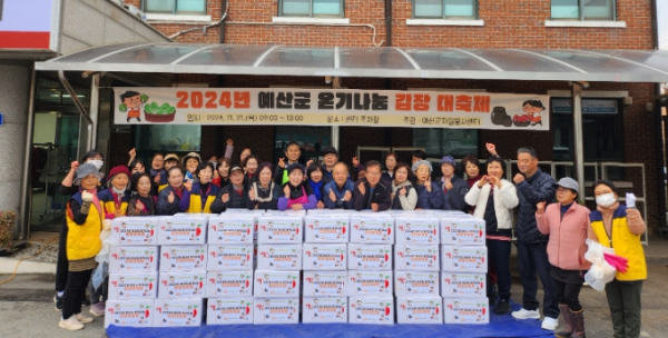 [내외일보] 김창호 기자 = 예산군자원봉사센터는 지난 21일 센터 주차장에서 관내 취약계층을 위한 ‘2024년 예산군 온기나눔 김장 대축제’를 개최했다.